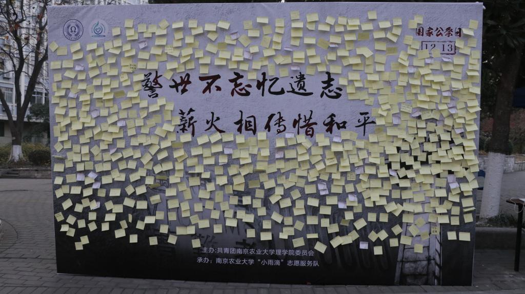 本次主题活动采用线上线下相结合的形式。线上以H5的形式带大家回顾历史,警示青年大学生要铭记使命,奋发图强。线下面向全校师生举行了“铭记国殇历史,听述英烈事迹”、“回望沧桑岁月,竞答雨花峥嵘”、“不忘革命初心,留言祈愿和平”、《穿越时空的对话-烈士家书诵读》系列活动。通过校园快闪、现场讲解、互动答题、祈愿留言等形式,深切表达南农青年对国家公祭日的深思以及吾辈自强的决心。