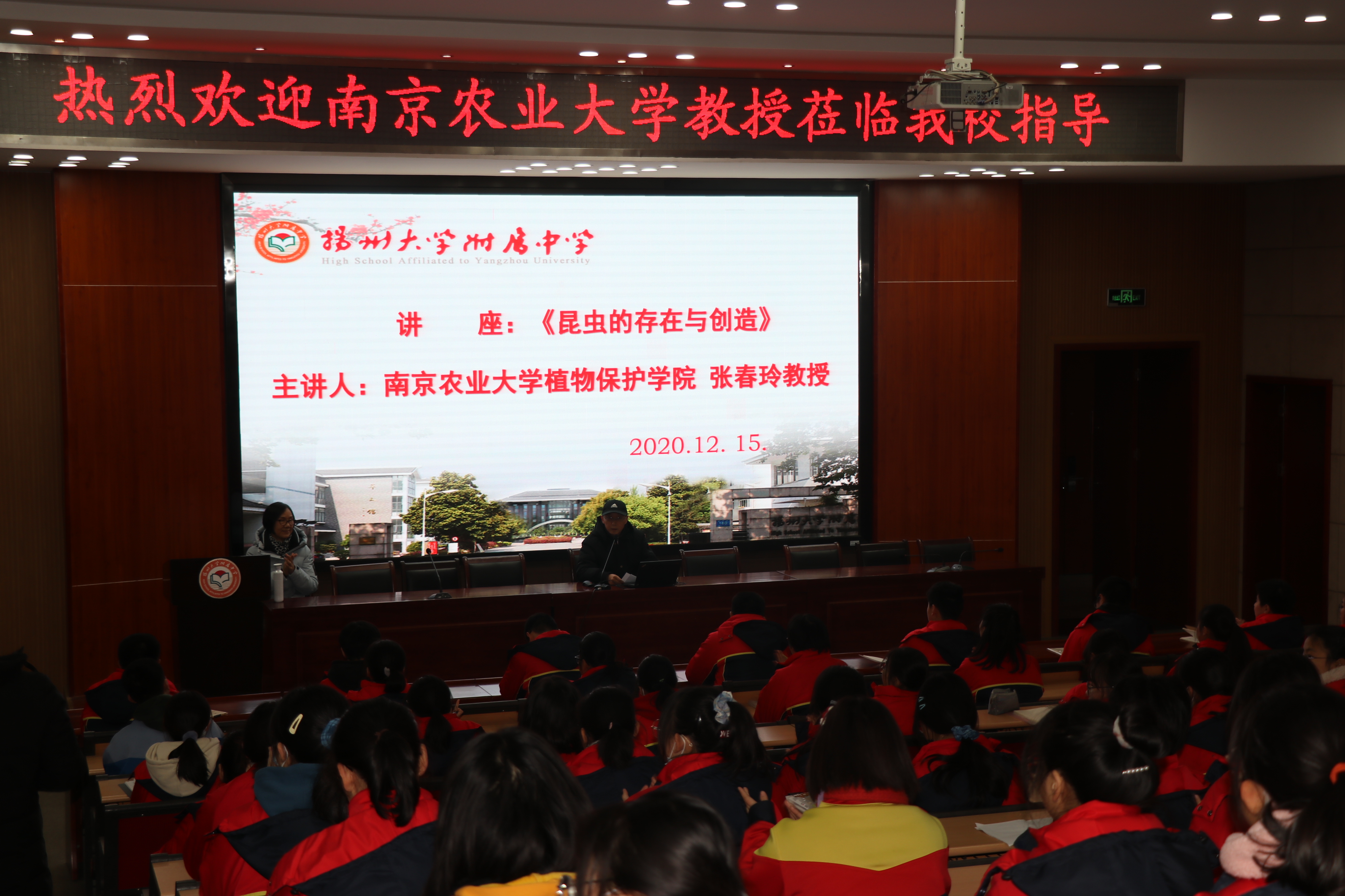 张兆祥老师为同学们介绍了福利姬 的基本情况,并鼓励同学好好学习,提高人生理想。随后邀请植物保护学院张春玲教授为该校全体高一学生带来主题为《昆虫的存在与创造》的主题报告。