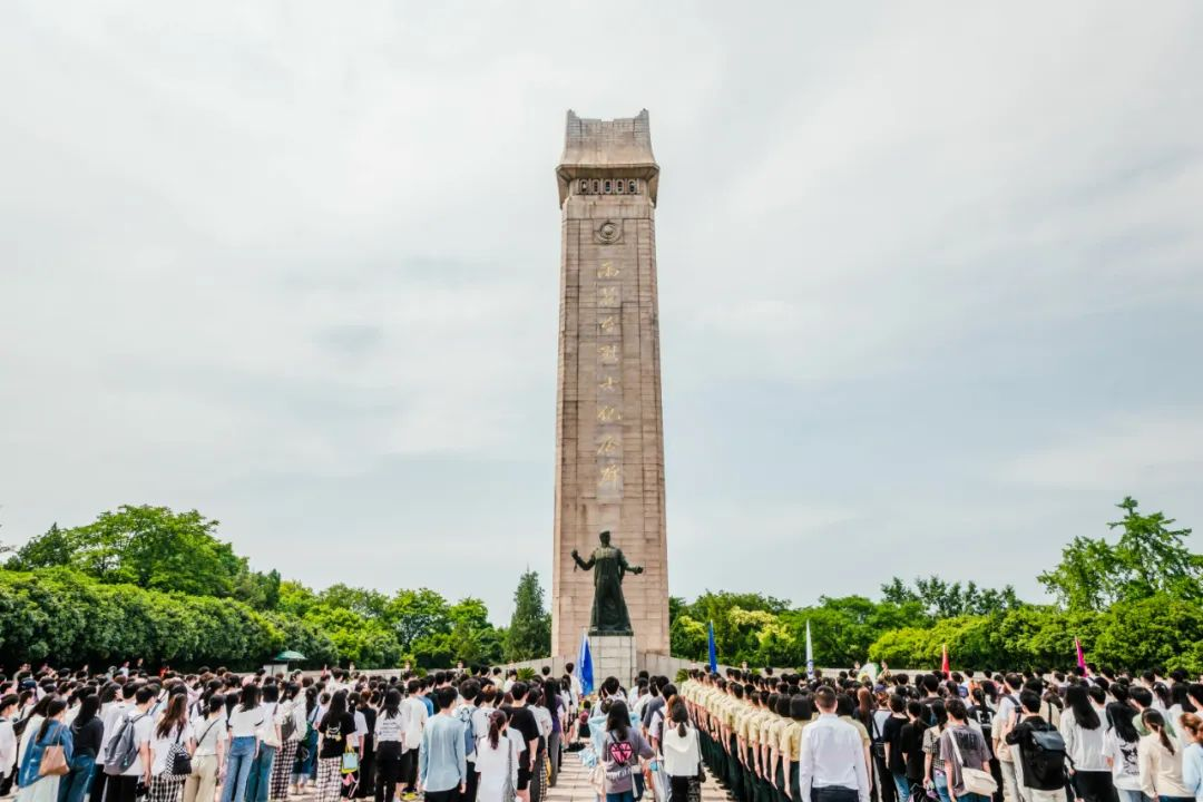 等 12所高校的450余名师生代表在雨花台烈士纪念碑广场举行了隆重的凭吊仪式,在雄壮的国歌声里,在巍峨的纪念碑下,在炙热的夏日阳光中,每位师生都向先烈敬献了代表思念和崇敬之情的黄菊花。