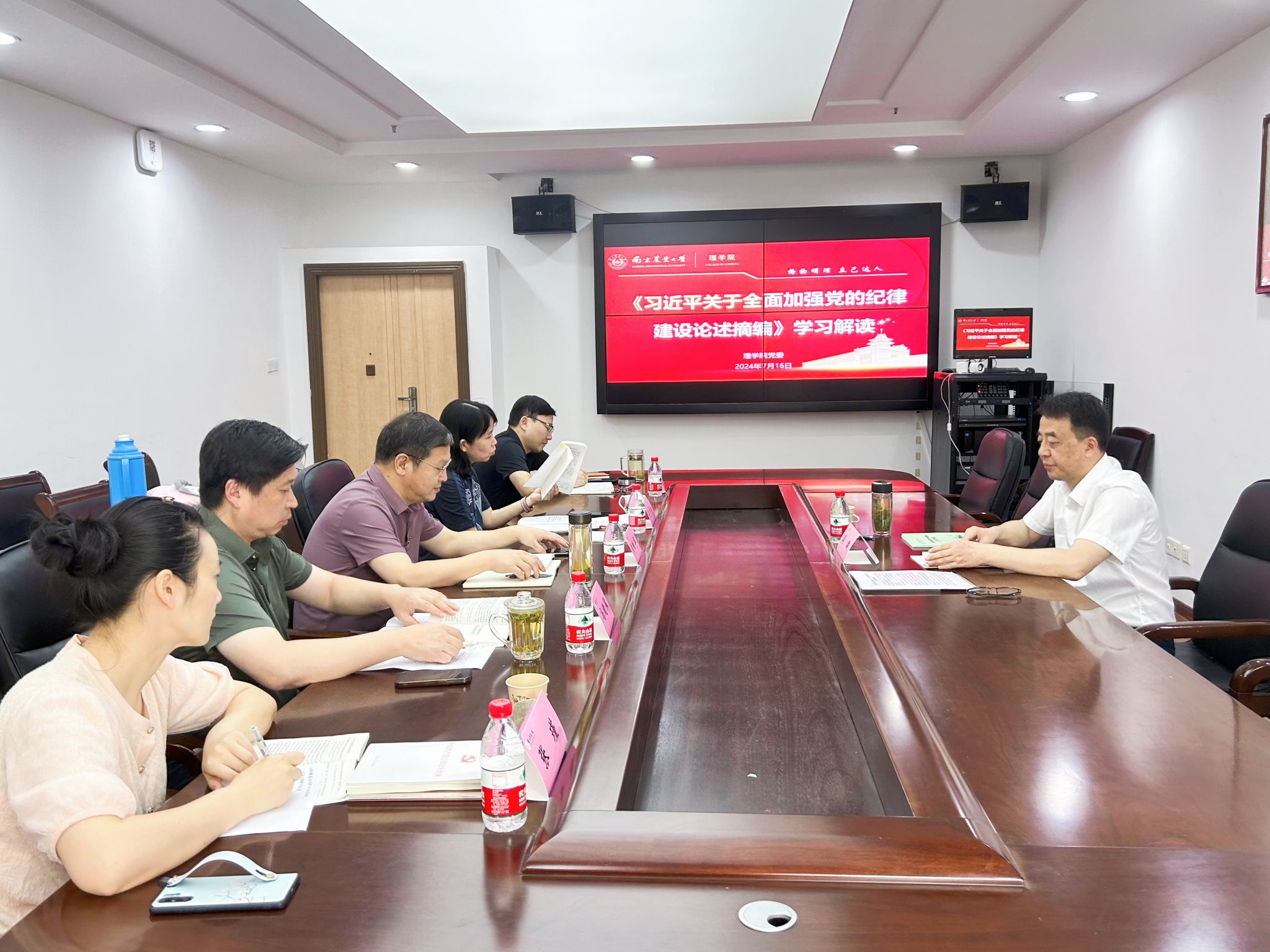 会上,学院领导班子成员逐一开展《摘编》领学,依次带领大家对“加强纪律建设是全面从严治党的治本之策”“‘两个维护’是党的最高政治原则和根本政治规矩”“强化纪律执行,使纪律真正成为带电的高压线”等十个章节的内容进行选读,原原本本读原著,逐章逐条学原文,并结合自身思想和工作实际,就进一步加强党纪学习教育,推动学院中心工作交流了学习体会,明确了下一步努力的方向。学习交流达到了思想碰撞、相互启发的良好效果,班子成员加深了对习近平总书记关于加强党的纪律建设重要论述的理解与领悟,强化了学纪知纪明纪守纪、争做忠诚干净担当的好干部的决心。