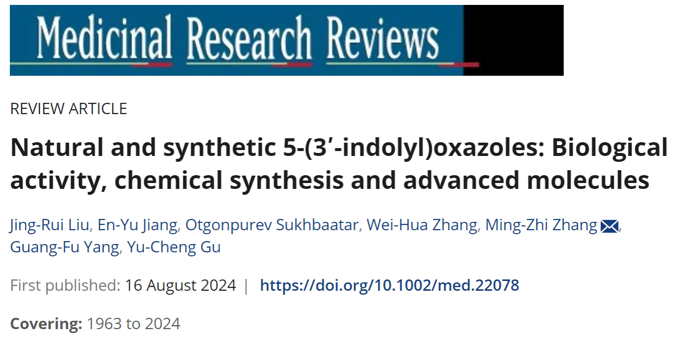 章维华教授和张明智副教授团队在药物化学领域国际权威期刊《Medicinal Research Reviews》在线发表了题为“Natural and synthetic 5-(3’-indolyl)oxazoles: Biological activity, chemical synthesis and advanced molecules”的综述论文,系统总结了1963年至今含有5-(3’-吲哚基)噁唑结构的天然产物及合成化合物的生物活性、化学合成、作用机理及活性分子,包括团队前期的系列研究工作。值的一提的是,这是福利姬
