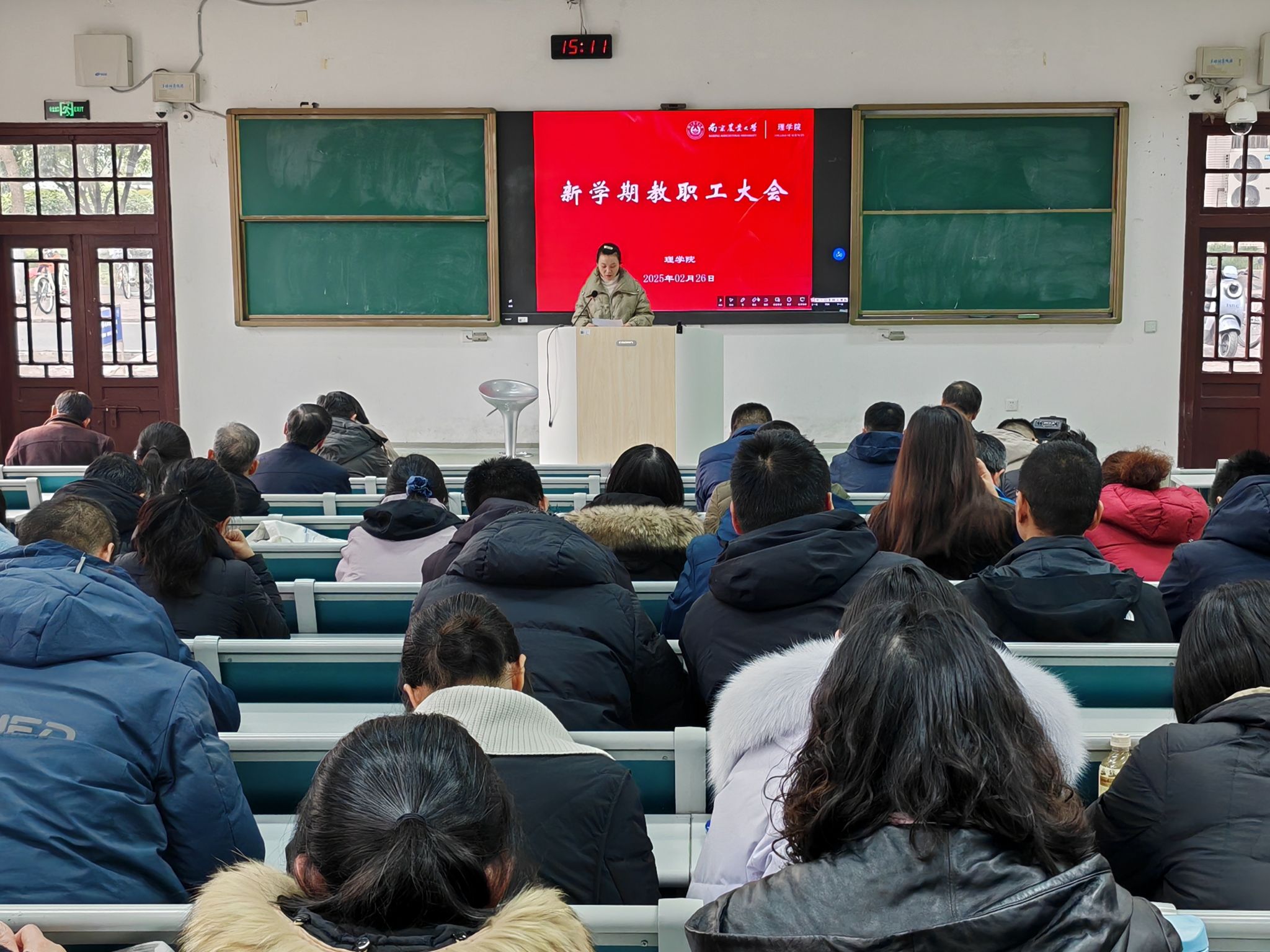院长章维华以详实的数据和典型案例全面回顾了过去一年在教育教学、科学研究、国际合作等领域取得的突破性进展,并对2025年新学期工作进行全面动员与部署。他指出,2025年是“十四五”规划收官之年,也是谋划“十五五”发展的关键之年,更是学院空间拓展的重要一年。2025年,学院将围绕党建引领、人才培养、学科建设、科研创新、学生工作、国际合作等工作重点展开。同时对本年度学校下达的目标管理考核任务进行逐一解读,强调达成目标的重要性,提出了目标实现的路径举措。他强调,全院教师应发挥基础研究的优势,主动求变,融入到学校学院有组织的科研大环境中,深化学科交叉融合和成果运用。要进一步解放思想,牢记使命,锐意创新,立足本职,争先争优,共同为实现学院事业高质量发展而努力奋斗。