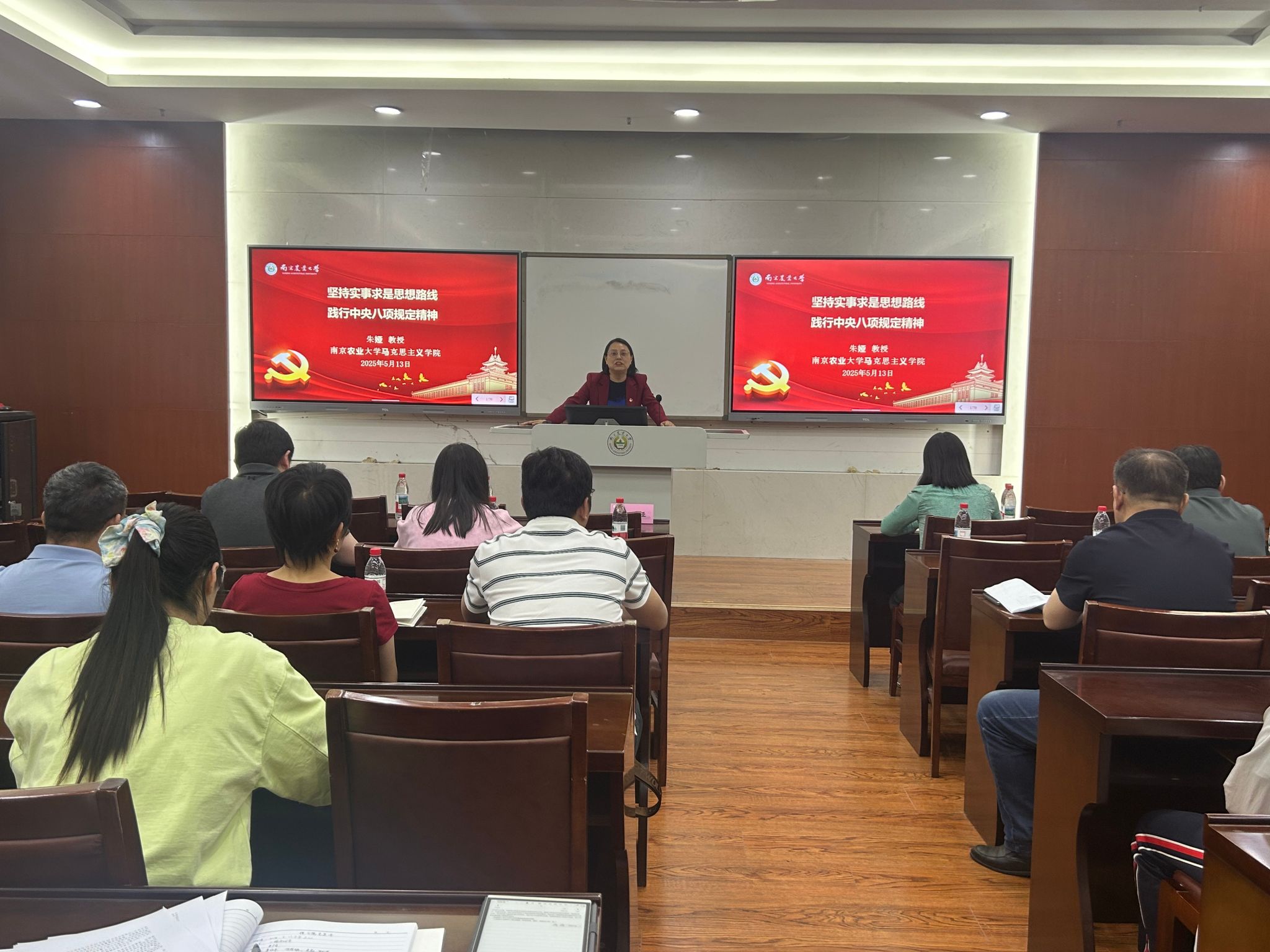 朱娅教授在报告中回顾了党的十八大以来开展的一系列学习教育活动,点明这些活动对党员思想建设的重要意义。接着,她详细解读中央八项规定,从改进调查研究、精简会议活动等八项内容,到规定的精神实质,再结合“四风” 问题,清晰阐释了违反规定的具体表现,让党员们对中央八项规定有了更为透彻的理解。在讲解实事求是思想路线时,朱娅教授从其在革命时期的形成,到不同历史阶段的发展,展现了这一思想路线的重要性。同时,针对新时代坚持该路线存在的问题,倡导党员要做到求真务实,在工作中讲实情、出实招、办实事、求实效。