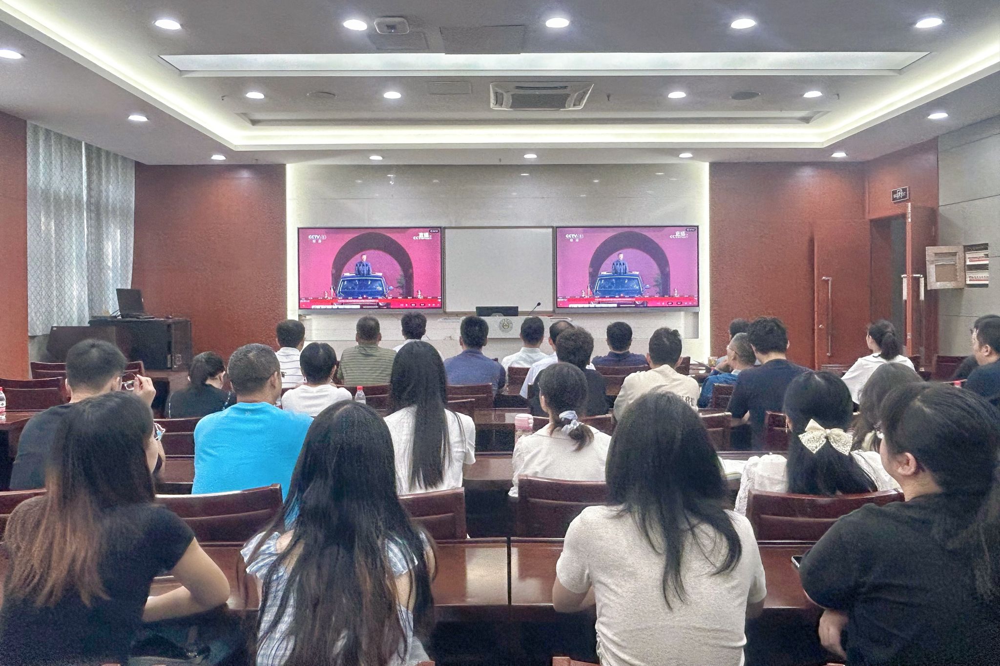 组织师生集中观看《纪念中国人民抗日战争暨世界反法西斯战争胜利80周年大会》并开展中心组专题理论学习,学院全体院领导、党支部书记、师生代表参加相关活动。