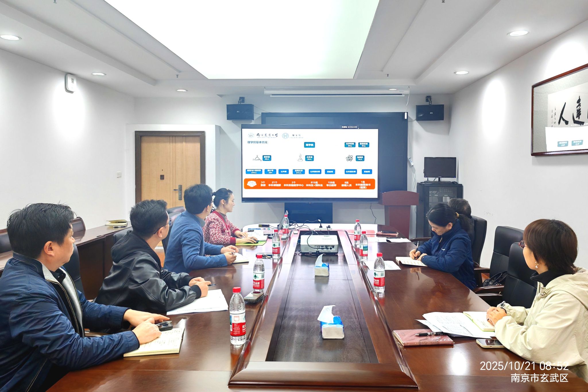 本科教育教学的整体情况。随后,张瑾副院长代表学院作本科教学工作专题汇报,从本科教学运行现状、师资队伍建设进展、教学资源优化举措及教学质量提升成效等方面展开详细阐述,并梳理了当前工作中面临的困境与挑战,就师资队伍结构优化、实验教学平台升级等实际问题进行了详细说明。