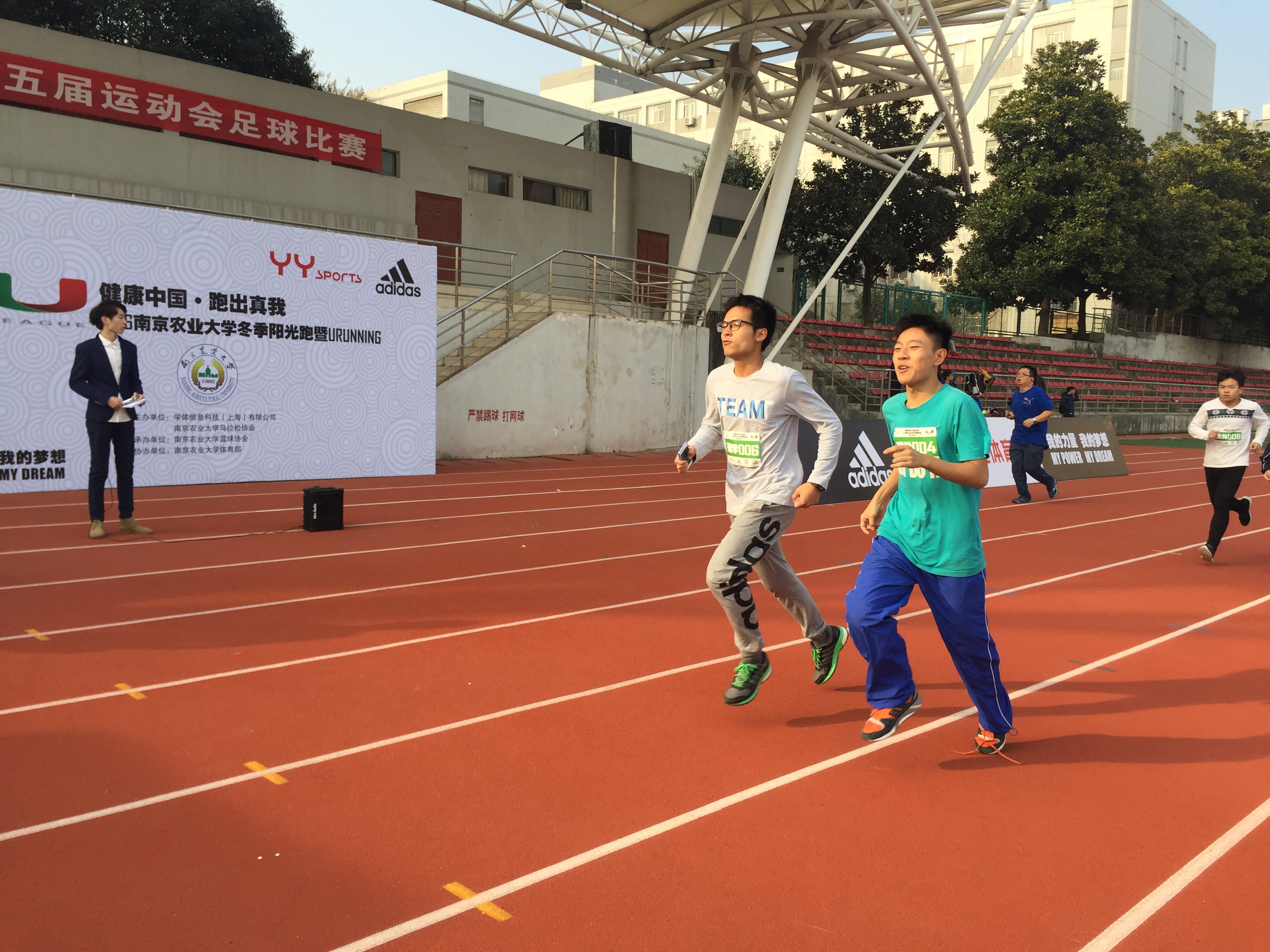 2016年12月7日下午14:00,各个学院代表队齐集操场,为即将开始的“2016年南农冬季阳光跑”做准备活动。此次比赛有3000米和800米的两项比赛项目,每轮阳光跑都先有马协会长手持大旗带领参赛选手围操场外跑一周,再进入操场完成接下来的跑程。