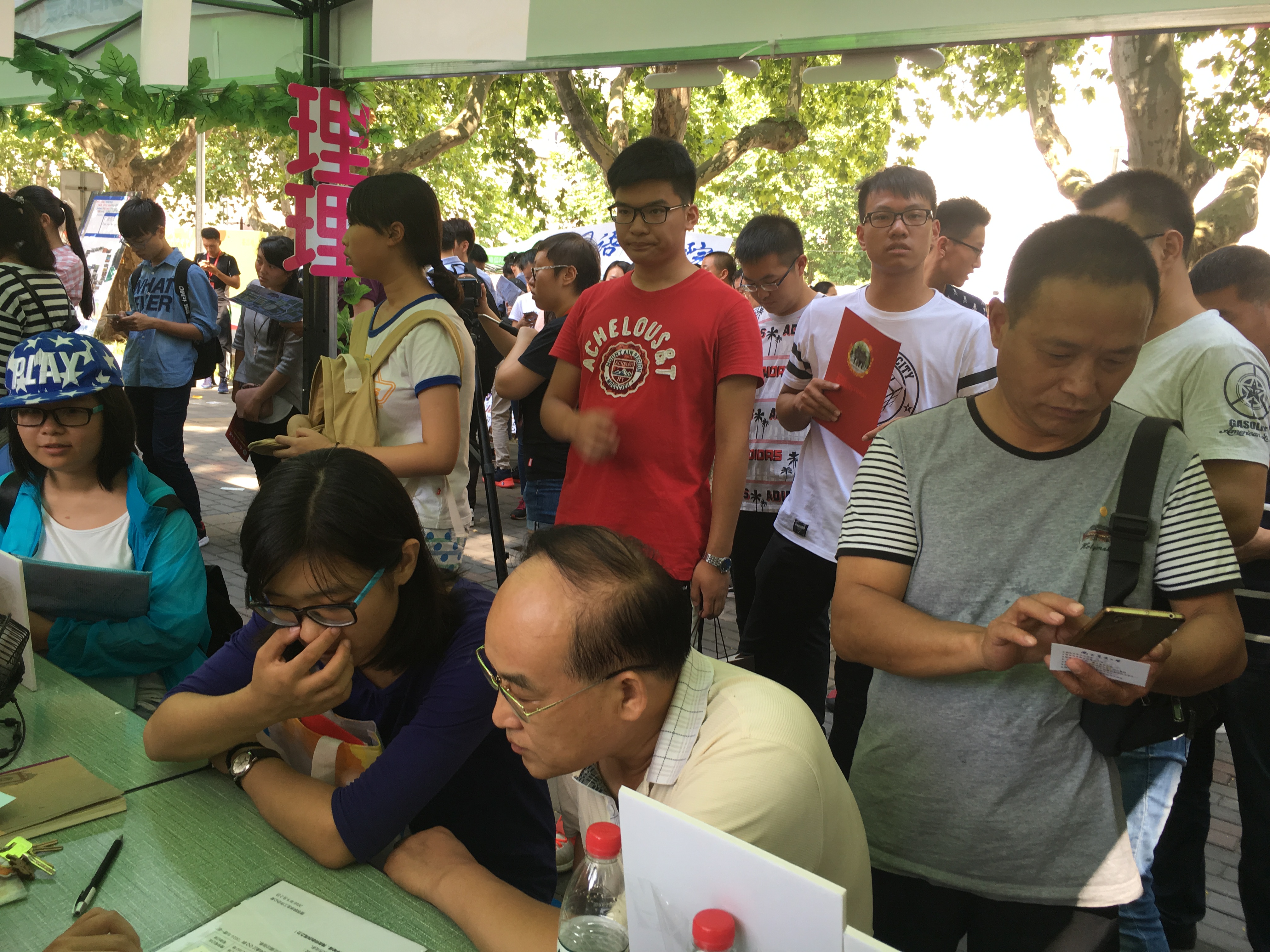 秋日还伴随着丝丝炎热,调皮的汗珠在志愿者们年轻的脸庞上跳跃,玫红色的“理”字在清风中飘扬,像是为志愿者们点赞,又似要吹进每一个来报到的新生心里。
