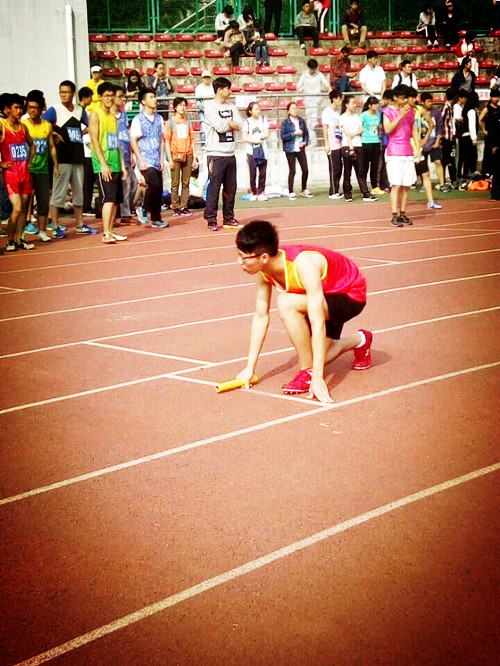 10月24日上午9:00,随着一声发枪响,校运动会女子4*400米接力赛正式拉开了帷幕,参赛的选手们在赤红的环形跑道上展开激烈的追逐赛。