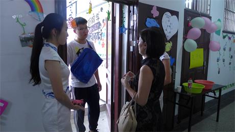 的热爱;一部分人在主楼门口负责接待对学校不熟悉的家长和新生们,疲惫的家长们脸上也露出了笑容。