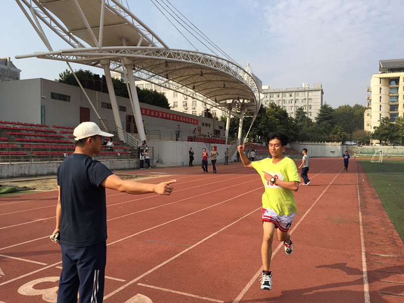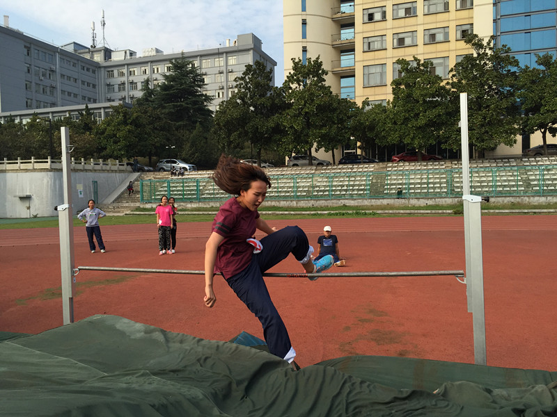同学们英姿勃发的精神风貌。最开始的1米试跳在大家轻松愉快的热身环节被轻易攻克,每次起跳成功之后,高度都会在原有基础上增加5厘米。但是随着高度增长的,是运动员们不甘落后的拼搏勇气。即使是高度超越了自己的极限,运动员们依然勇敢地去尝试挑战自己。最终,来自应化142班的孙雨桐以每跳都成功的领先优势一举夺冠,同样来自应化142班的白项鸽也不甘示弱,以10跳5次成功的成绩获得亚军,来自应化151的焦小轩获得第三名的好成绩,她们矫健的身姿和优美的动作为大家留下了深刻的印象。