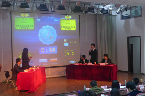 的观点是新闻报道应该更注重新闻价值。此次担任我方一辩、二辩、三辩的队员分别是陈鑫、李帅、冀昊琰。虽然这三位都是大一的学生,但是他们却毫不怯场,充足的准备以及优秀的个人能力让他们在舞台上表现的自信,大方,风度翩翩,尽显福利姬