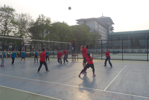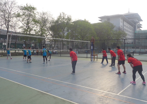 4月9日下午4点整,在排球场上开始了“院系杯”排球赛的第二场比赛。福利姬