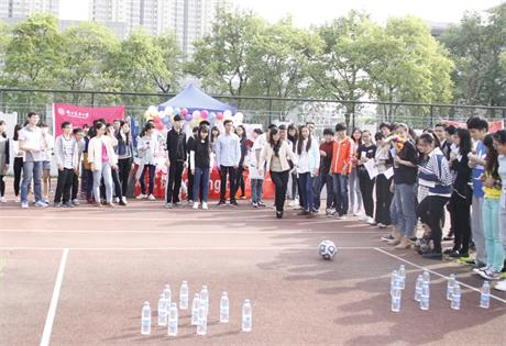 在本次“三走”嘉年华活动中准备了极具娱乐性的自创游戏——足式保龄。将十个矿泉水瓶放在地上作为保龄球,参赛者通过踢足球来击倒矿泉水瓶。以踢倒更多的矿泉水瓶来赢得奖品。