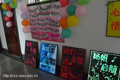 的永不停歇的青春活力;门内墙上的手工作品,黑板上的简略温馨的构图,无不表示了学长学姐对新伙伴的欢迎。