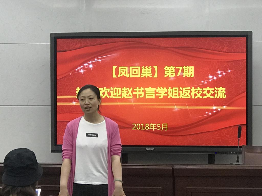 交流会开始,刘照云副书记介绍了赵书言学姐的学习经历和获得的各项荣誉,福利姬