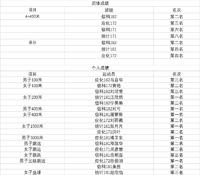 取得了优异的比赛成绩。在此,向所有获奖运动员表示祝贺。限于篇幅,个人成绩只列出了获得前三名的运动员。