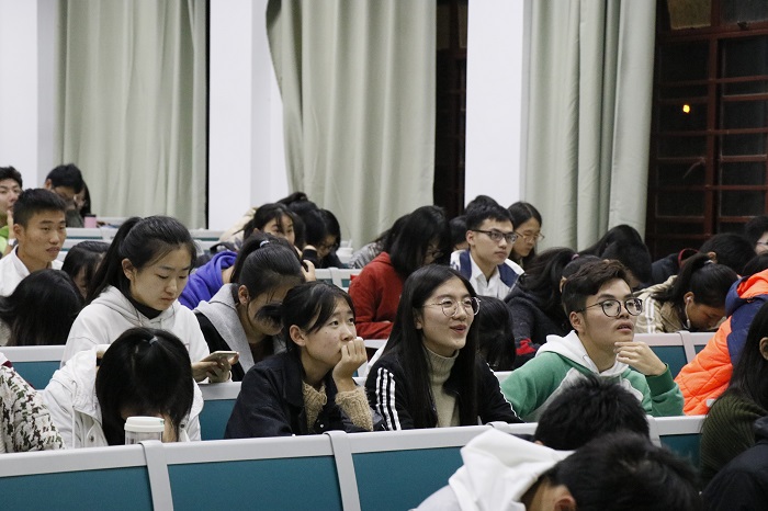 接着,本次国家励志奖学金的五位获奖者依次上台分享经验。他们分别是应化151班郭蕾、信科162班朱闪闪、应化161班卢伟华、统计161班樊杜泽和信科172班朱泽林。他们对自己的大学学习经验,个人经历及心得体会向同学们做了分享。