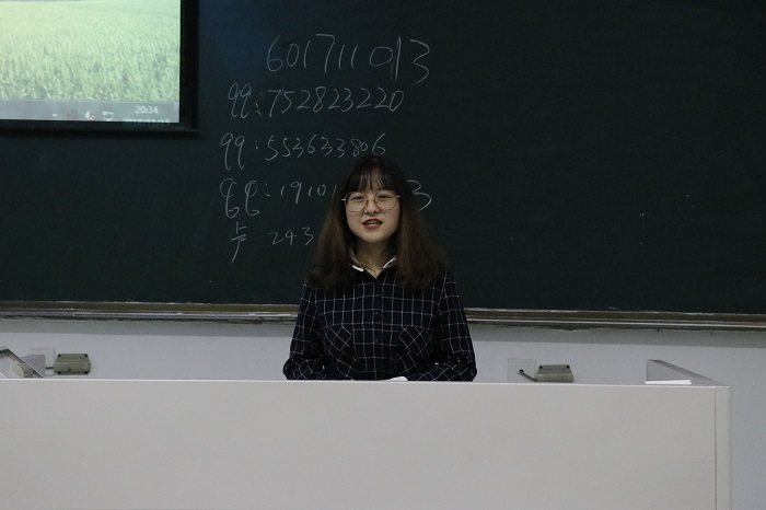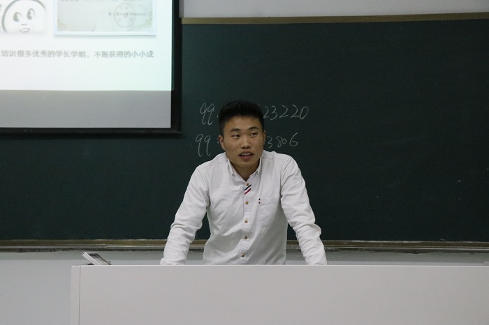 接着,本次国家励志奖学金的五位获奖者依次上台分享经验。他们分别是应化151班郭蕾、信科162班朱闪闪、应化161班卢伟华、统计161班樊杜泽和信科172班朱泽林。他们对自己的大学学习经验,个人经历及心得体会向同学们做了分享。
