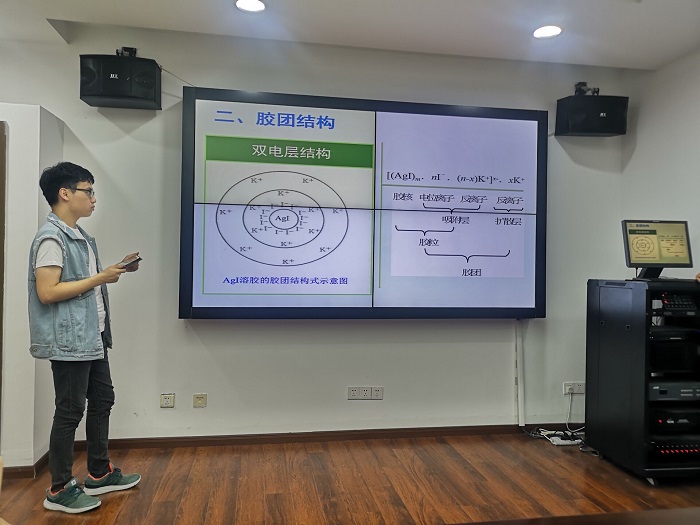 接下来由负责无机分析的同学从稀溶液的依数性,胶团结构,化学热力学基础,化学动力学基础,原子结构等方面进行了重点的讲解。利用课件形式十分详细的从性质入手,结合原理,公式,通过例题对知识进行全面的讲解。