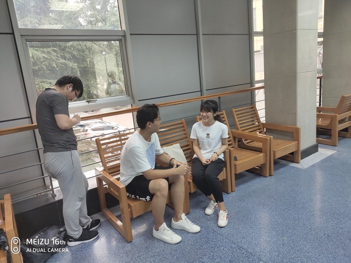 信息与计算科学专业保研成功的关朕同学。负责采访关朕同学的小组认真准备了采访稿,包括了同学们对于如何才能成功保研的疑问以及在学习生活方面的疑惑,关朕同学都耐心地一一做出了回答。
