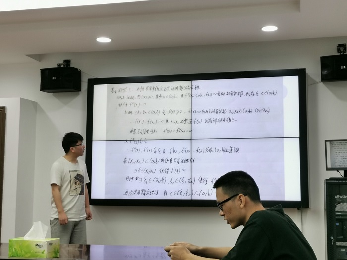 然后是负责数学分析的同学,选择对一个重点进行详细的讲解,将微分中值定理进行了详尽的阐述,从性质和定义入手,结合了例题和不同的解答过程,全面的介绍和复习了微分中值定理。