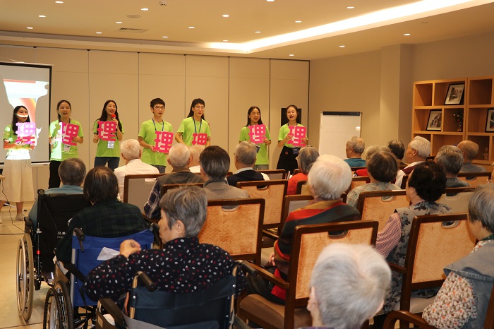 关注、关心和关怀老人,永远是时代的风尚。在实践活动的最后一天,“寻革命足迹,焕时代精神”实践小组再出发,以“忆峥嵘岁月,展青春风采”为主题,为颐养院的老人们送去了一场精心准备的慰问演出。