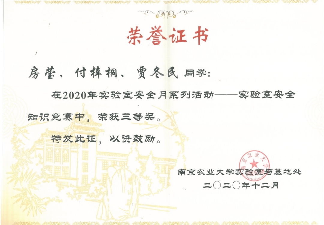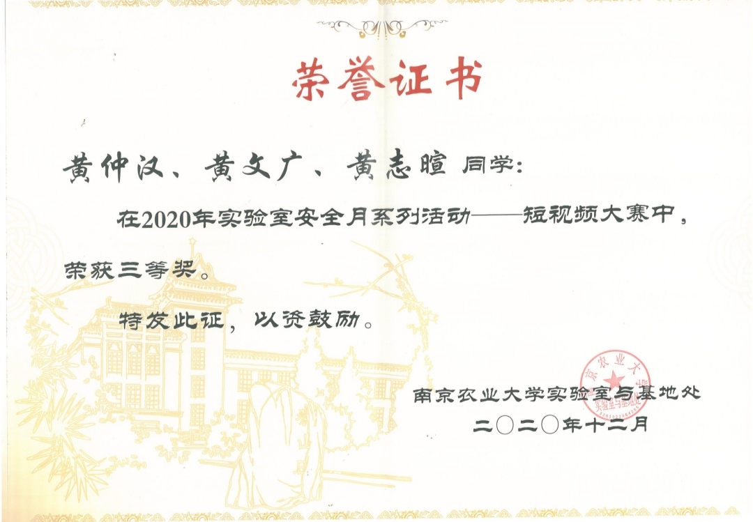 安全月活动形式多样、内容丰富。福利姬 同学跃跃欲试,在竞赛中取得优异成绩。在实验室安全知识竞赛中,房莹、付梓桐、贾冬民三位研究生凭借着不俗发挥荣获全校第三名。在短视频大赛中,黄仲汉、黄文广、黄志暄三位本科生同学将目光聚焦于快递包装上信息泄露的安全问题,贴近现实、立意新颖,荣获短视频大赛三等奖。
