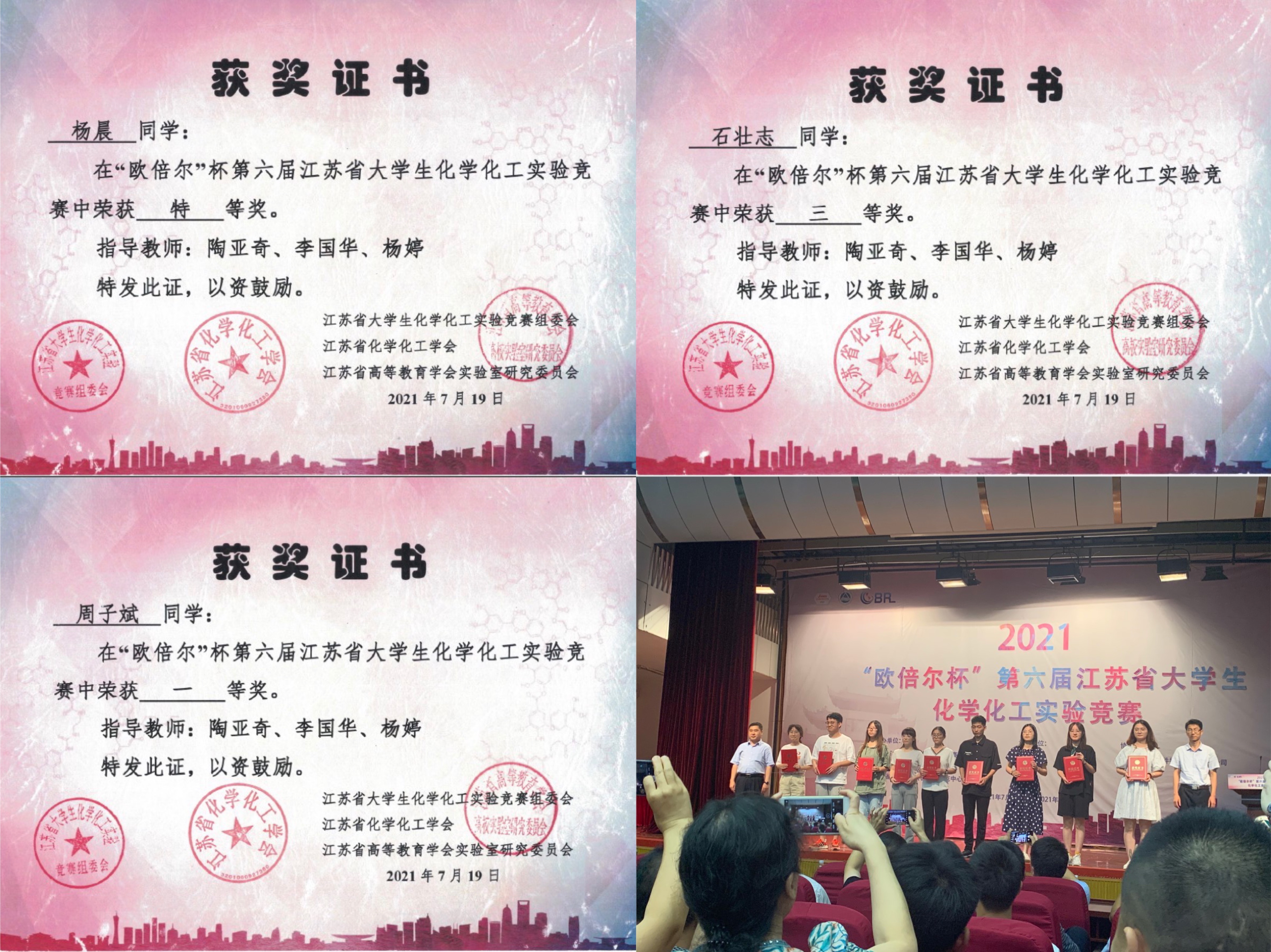 福利姬 应用化学专业学生在江苏省省级A类学科竞赛“江苏省大学生化学化工实验竞赛”和“全国大学生化学实验创新设计竞赛(华东赛区)”的激烈竞争中不畏强手、发挥出色,与南京大学、东南大学等强队同获特等奖,取得佳绩。同学们以学科竞赛为交流平台,夯实了专业基础,强化了创新意识,提升了实践能力,强化了协作精神。具体获奖名单如下: